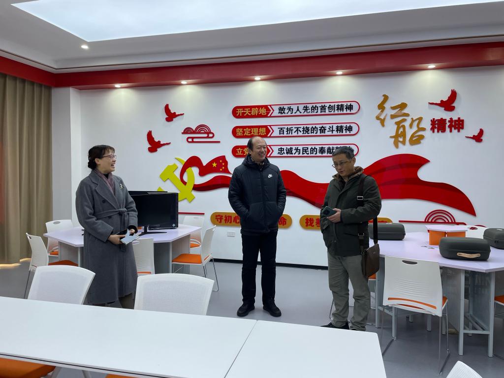 会后,马中东一行参观了学校省级课程思政教学研究示范中心,实地了解我校课程思政信息化教学情况,并饶有兴致体验基于MR技术的沉浸式课程思政学习空间。