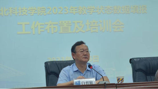 9月27日下午,学校召开2023年本科教学基本状态数据填报工作会,部署年度本科教学基本状态数据采集工作,并开展相关工作人员业务培训。党委常委、副校长白育庭出席会议并讲话,学校各相关单位的数据填报员和审核员、教务处相关工作人员参加会议。会议由教务处处长鲍翠玉主持。