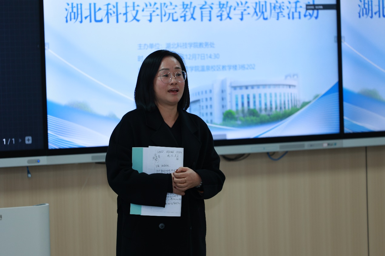 党委书记闫英姿为观摩活动致辞。她结合自己的求学成长经历,通过讲述对自己影响最深的老师,深入浅出地阐释了好老师对人才培养的重要性。她指出,本科教育是学校的中心工作,课堂教学是人才培养工作的主阵地。学校始终胸怀这个“校之大者”,一直致力于提高教学水平,推动教育教学改革与创新,聚焦立德树人根本任务。她进一步指出,习近平总书记在二十届中央政治局第五次集体学习时强调,要坚持把高质量发展作为各级各类教育的生命线,加快建设高质量教育体系。学校开展教育教学观摩活动,目的就是要充分发挥优秀教师的引领作用和教学观摩课的示范作用,引导广大教师贯彻落实新教学理念,深化教育教学改革,增进教师之间的教学探讨和交流,使教育教学观摩成为教师之间相互交流、共同提高的平台,锻造一支与学校高质量转型发展相适应的教师队伍。她希望广大教师要苦练教学内功,不断提高教学水平,注重教学质量和学生发展,积极探索新时代高等教育教学模式和方法。